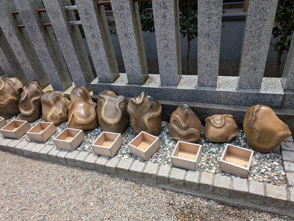 境内に設けられている霊水場で、ザルを使って、お財布の中のお金を清めるそうです。
