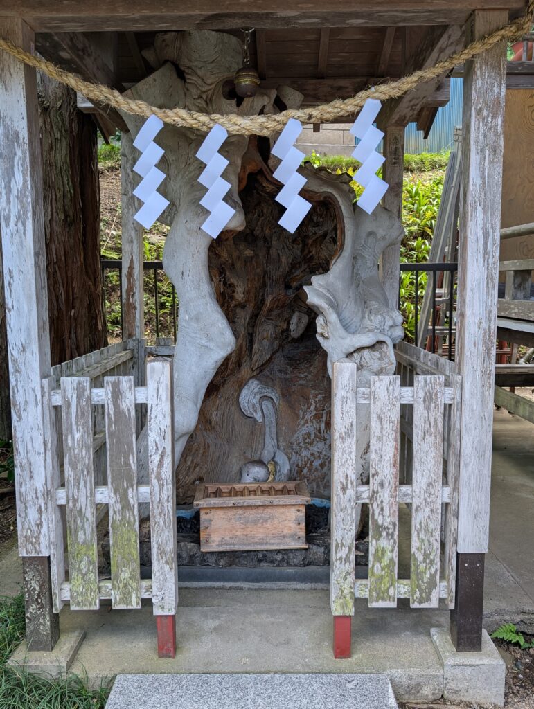 木の幹の穴が開いたところに蛇がいるように見えると言われる御神木で、開運幸福・金運上昇・商売繁盛のご利益があるそうです。